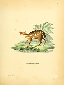 | Indian spotted chevrotain Moschiola indica | Sri Lankan spotted chevrotain Moschiola meminna | Yellow-striped chevrotain Moschiola kathygre |