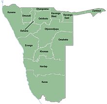 | 264 ? ? Kavango West, NA pop. 107,905 - NA-KW | 264 ? ? Kavango East, NA pop. 115,447 - NA-KE | 264 ? ? Zambezi, NA pop. 90,596 - NA-CA | 264 ? ? Erongo, NA pop. 150,809 - NA-ER | 264 ? ? Otjozondjupa, NA pop. 143,903 - NA-OD |