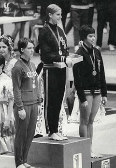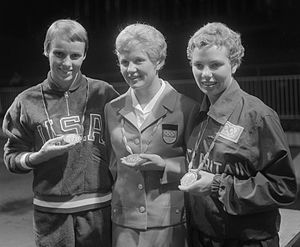 | Marjorie Gestring 1 ? Hillsborough, CA 1922(11/18) - 1992(04/20) | Birte Christoffersen Hanson Ekberg 45 ? Copenhagen, DK 1924(03/28) | Victoria Manalo Draves 1 ? San Francisco, CA 1924(12/31) – 2010(04/11) | Ninel Vasilyevna Krutova Bezzabotnova 380 ? Kiev, UA 1926(01/03) | Patricia Anne Elsener 1 ? Oakland, CA 1929(10/22) |