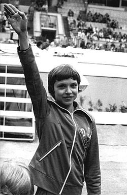 | Nellie Vladimirovna Kim 992 ? ? Shurab, Isfara, Sughd, TJ 1957(07/29) | Teodora Ungureanu 40 ? ? Resita, RO 1960(11/13) | Nadia Elena Comaneci 40 ? Onesti, Bacau County, RO 1961(11/12) | Maxi Gnauck 49 1 030 Berlin, BE, DE 1964(10/10) | Julianne Lyn McNamara 1 ? ?, US 1965(10/11) |
